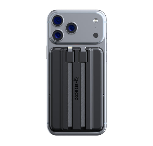 The 5-in-1 Magnetic Power Bank delivers long-lasting 10,000 mAh power in a slim, everyday-carry design. Snap it on magnetically, use the built-in kickstand for hands-free use, and wirelessly charge your Apple or Android phone (and Apple Watch). Integrated USB-C and Lightning cables power your tablet, laptop, or other devices on the go.