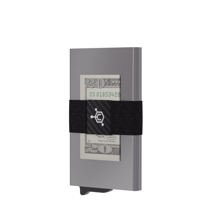 Magnetically snaps to your iPhone or MagSafe compatible accessories with an extremely strong bond, thanks to powerful neodymium magnets. A sleek RFID-blocking wallet built to streamline the way you carry cash and cards. This wallet is made from aerospace-grade aluminum and uses a trigger mechanism to eject your cards instantly. Additionally, the carbon fiber cash strap firmly secures any loose cash or extra cards.