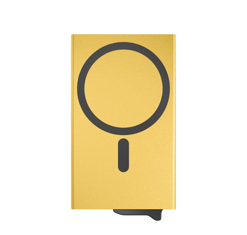 Magnetically snaps to your iPhone or MagSafe compatible accessories with an extremely strong bond, thanks to powerful neodymium magnets. A sleek RFID-blocking wallet built to streamline the way you carry cash and cards. This wallet is made from aerospace-grade aluminum and uses a trigger mechanism to eject your cards instantly. Additionally, the carbon fiber cash strap firmly secures any loose cash or extra cards.