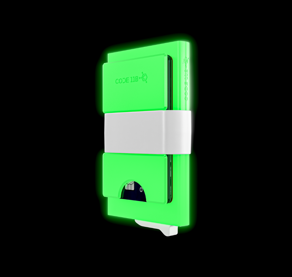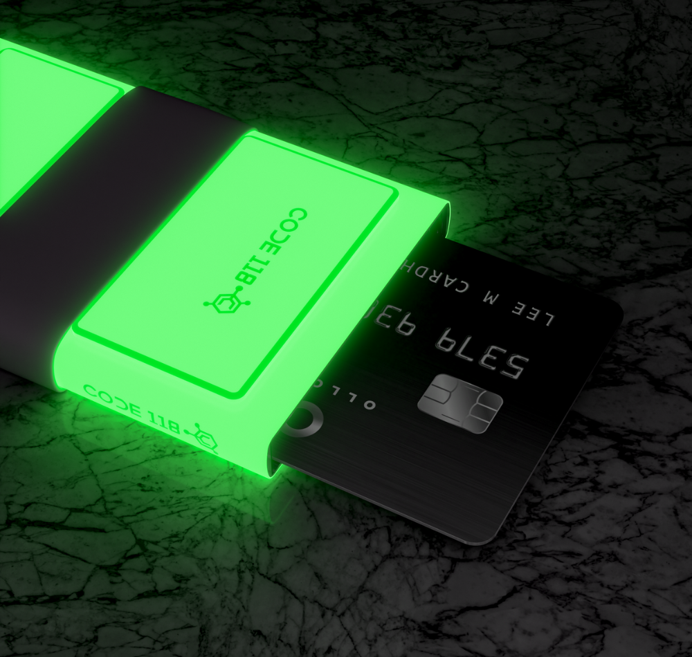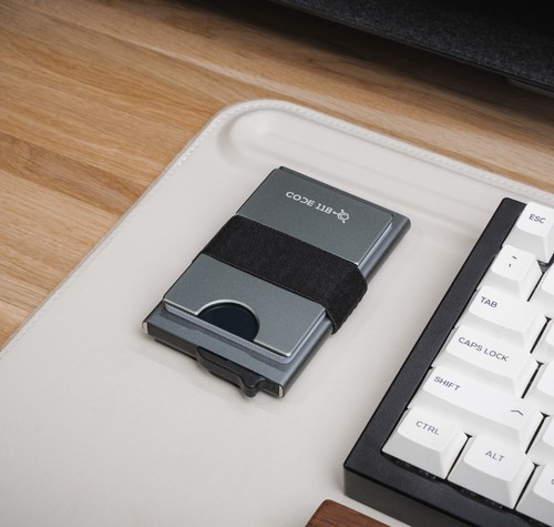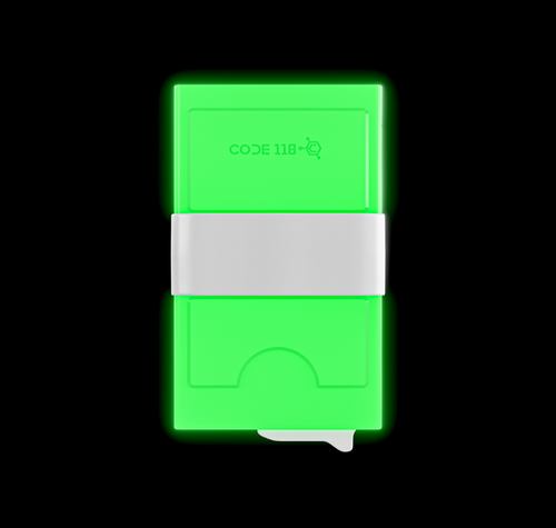 An ultra durable, low-profile silicone strap that allows you to track your CODE 118 Wallet anywhere in the world.