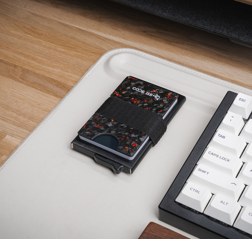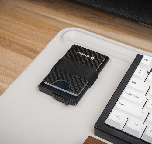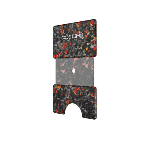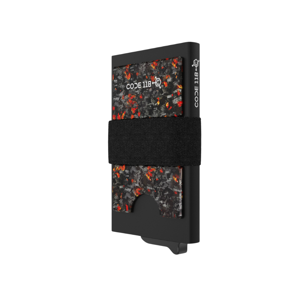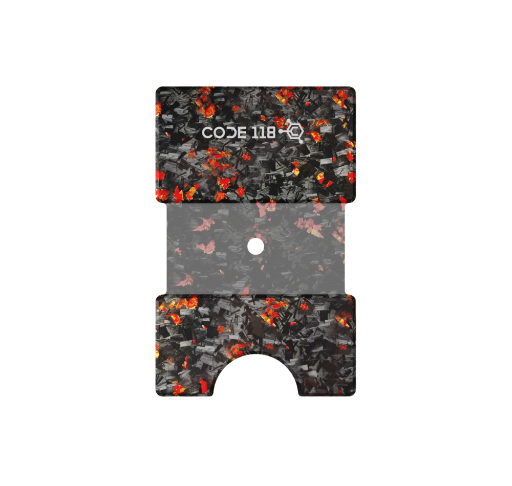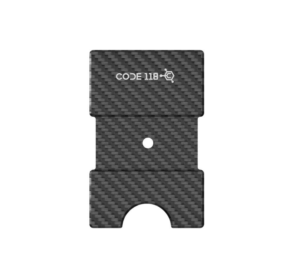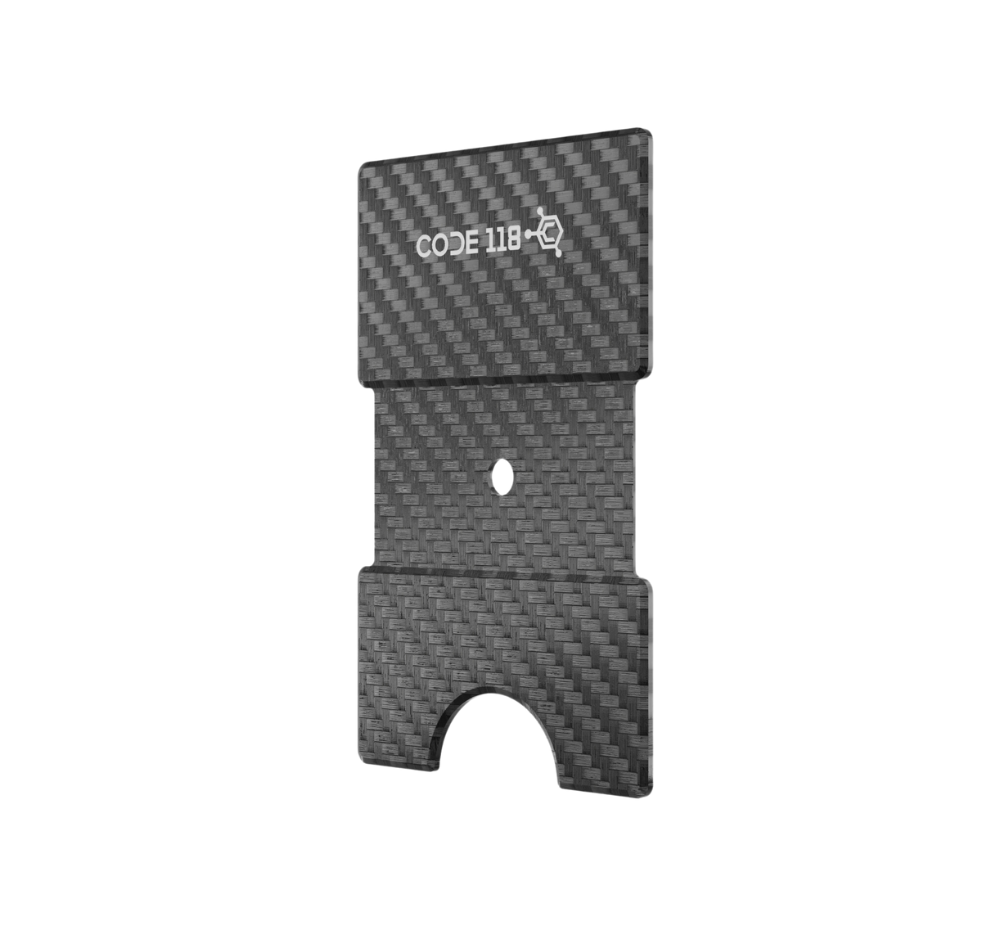 A modular add-on designed to expand our flagship CODE 118 Wallet's storage to accommodate up to 15 cards. This sleek expansion pack measures just two millimeters thin, and is crafted from the same aerospace-grade aluminum (or carbon fiber) found on our CODE 118 Wallet. This expansion pack is perfect for anyone who wants to carry more, with less.