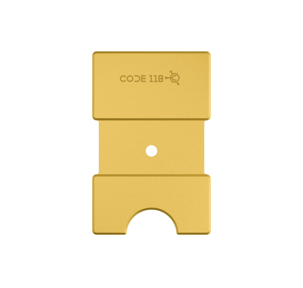 A modular add-on designed to expand our flagship CODE 118 Wallet's storage to accommodate up to 15 cards. This sleek expansion pack measures just two millimeters thin, and is crafted from the same aerospace-grade aluminum (or carbon fiber) found on our CODE 118 Wallet. This expansion pack is perfect for anyone who wants to carry more, with less.