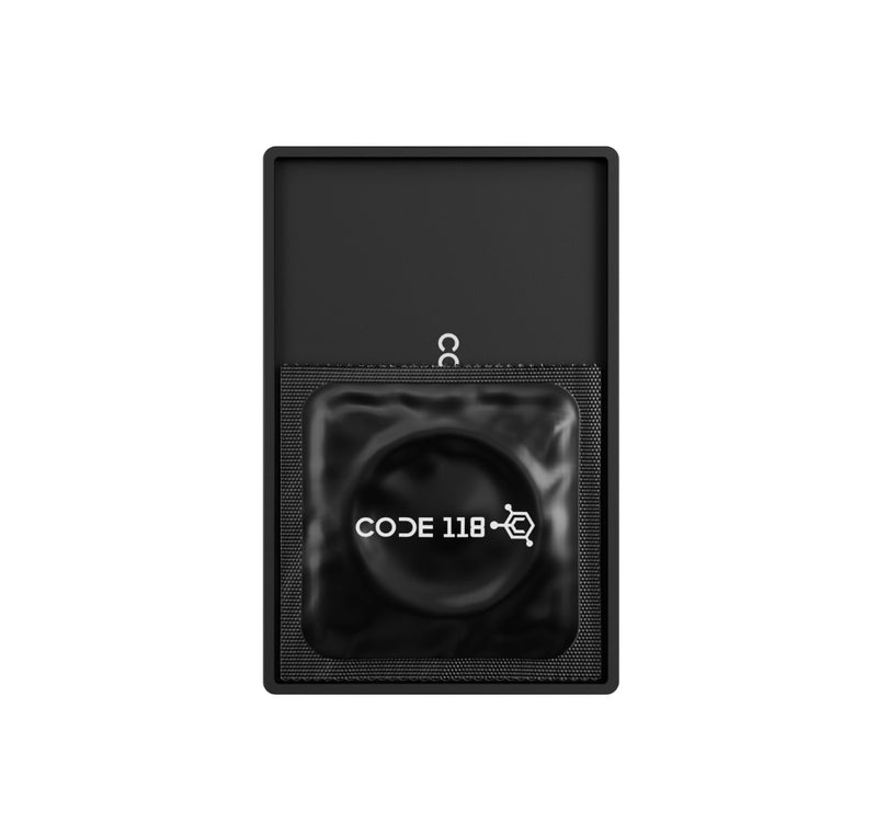 An ultra durable, low-profile silicone strap that allows you to track your CODE 118 Wallet anywhere in the world.