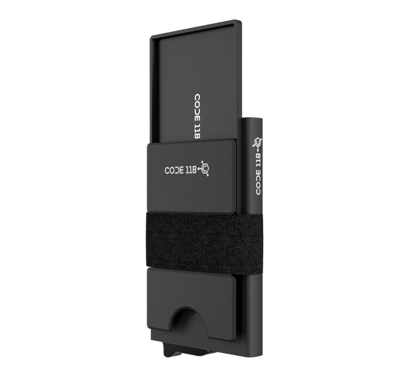 A modular add-on designed to expand our flagship CODE 118 Wallet's storage to accommodate up to 15 cards. This sleek expansion pack measures just two millimeters thin, and is crafted from the same aerospace-grade aluminum (or carbon fiber) found on our CODE 118 Wallet. This expansion pack is perfect for anyone who wants to carry more, with less.