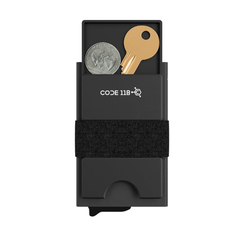 Carry what doesn’t belong in your card stack. The Stash Tray adds a discreet, enclosed compartment for coins, keys, photos, cash, condoms, or other small essentials in your CODE 118 Wallet.