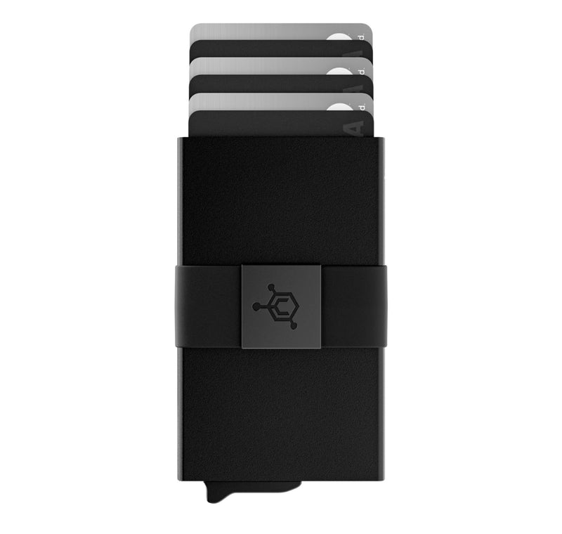 A sleek RFID-blocking wallet built to streamline the way you carry cash and cards. This wallet is made from aerospace-grade aluminum and features a sliding a trigger mechanism to eject your cards instantly. Additionally, the carbon fiber cash strap firmly secures any loose cash or extra cards.