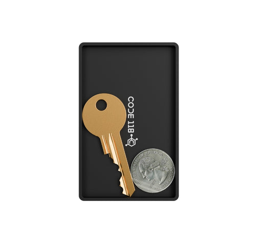 The world's slimmest tracking device, designed to be carried with our flagship CODE 118 Wallet. Compatible with both Apple and Android devices! It's the exact same size as a standard credit card, and it's made from aerospace-grade aluminum and tempered glass. Never leave your wallet behind again with the Tracker Card.
